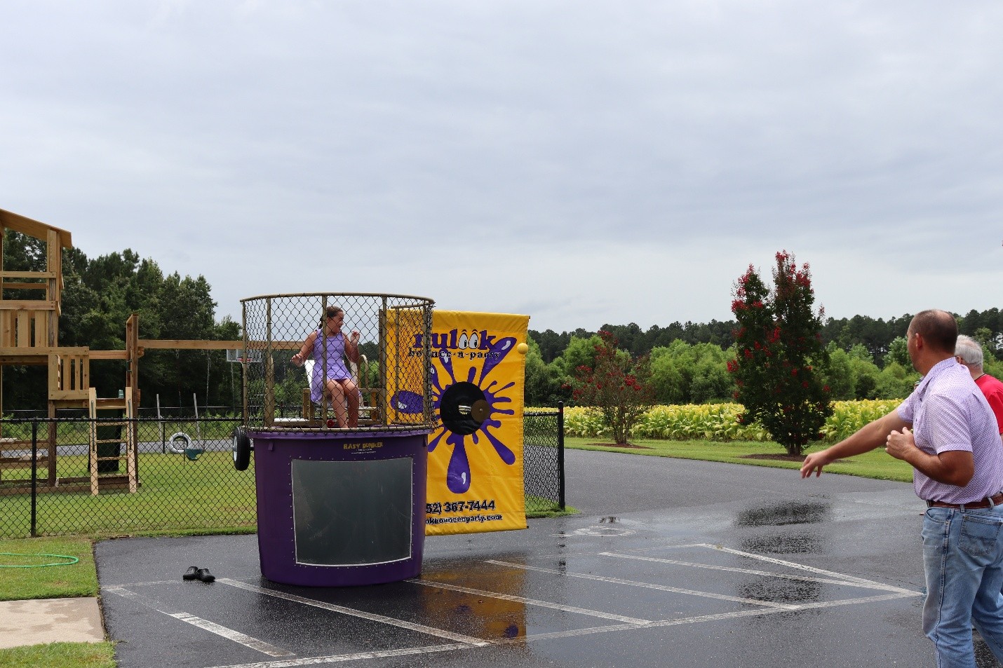 This event should have been called “Back to School Splash” because the Dunking Booth was the hit of the day! I had way too many pictures to put on here. If you want to see them all, get with me or Bob. We had games, food, Bouncy house, lots of music, and a whole lot of FUN! Next year it will be BIGGER!!!! By the way, watch out if the M&M’s start to throw something at you. ![]()